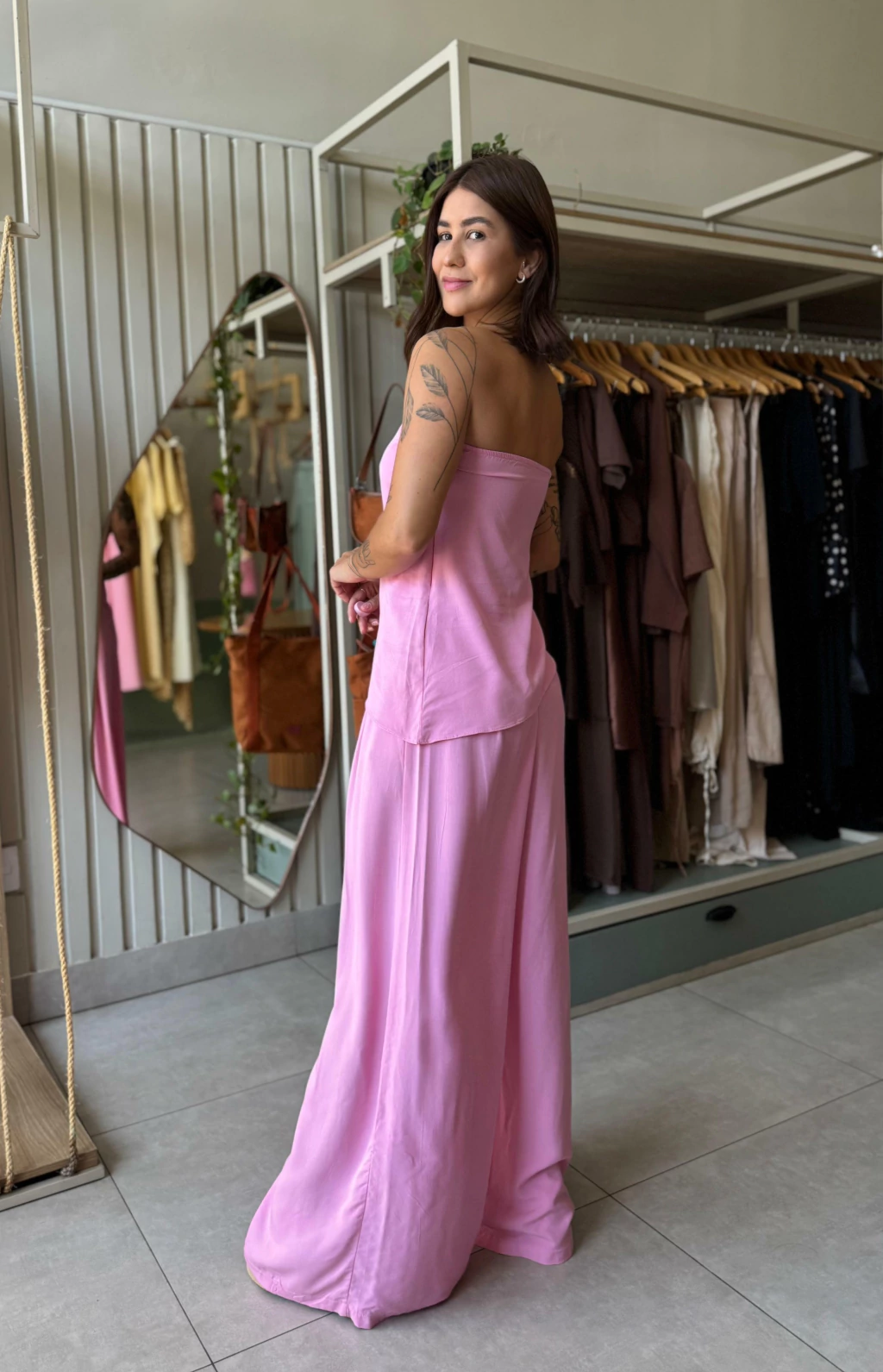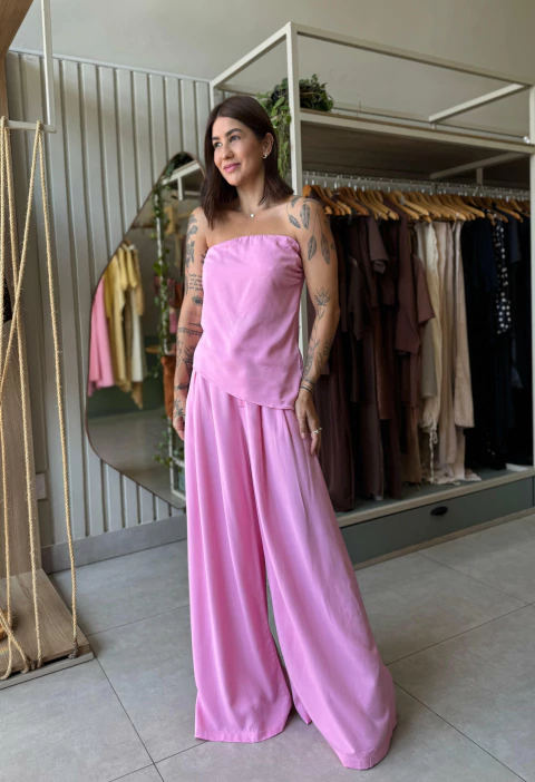 Blusa com zíper na lateral e elástico no busto e costas.