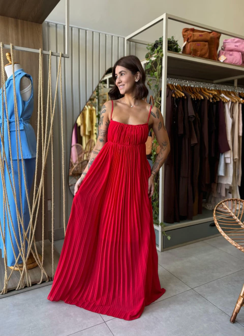 -Vestido Plissado com decote nas costas com o tecido chiffon.